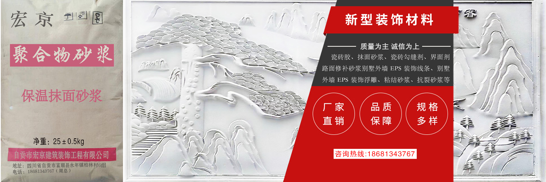 自貢市宏京建筑裝飾工程有限公司,成立于 2018 年,廠房位于位于四川省自貢市富順縣永年鎮柏林村 6 組柏林村小。本公司集保溫材料聚合物改性水泥基砂漿材料研發(fā)、生產、銷售于一體的干粉砂漿材料公司。 公司基于低碳、環(huán)保、綠色、節(jié)能的經營理念,生產推廣高效、節(jié)能、環(huán)保的新型保溫材料等產品。本公司 產品具有質量優(yōu)良、良好技術、精湛工藝、成本低等優(yōu)勢。公司成立以來,一直視產品質量為企業的生命, 堅持“質量為先,顧客至上”的服務宗旨,贏得了客戶的信賴,并建立了完善的售前售后服務體系,歡迎各 界來